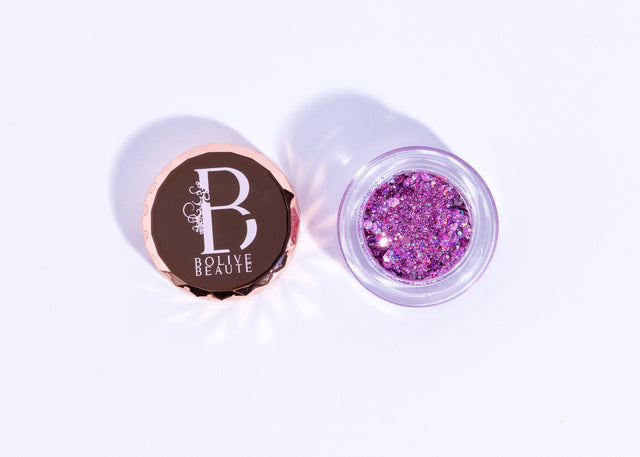 The Epitome of Radiant Beauty: 'Glitz and Glam' is more than just a glitter eyeshadow; it's a statement of elegance and charm. This client-favorite shade is a blend of pink and purple hues, perfect for those seeking to make a bold and beautiful impact with their makeup.