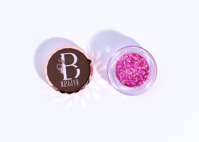 A Celebration of Vibrant Color: 'Moxie' by Bolive Beauté is a hot pink glitter eyeshadow that embodies the spirit of celebration and excitement. This party-perfect shade, infused with hints of blue and silver, offers a dynamic and captivating look, perfect for those who love to stand out.